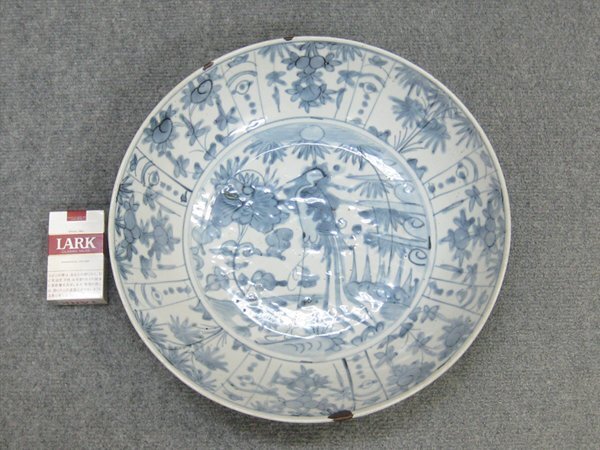 - 【心庵】時代物 中国 明時代 呉須 染付花鳥文/大皿 直径37cm 唐物 B076