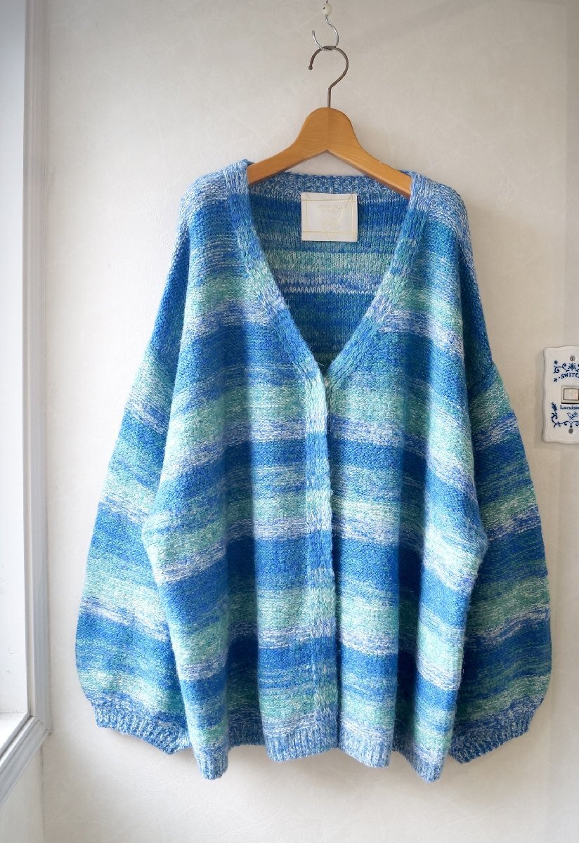 > ★ Mirror Mirror on the wall(ミラーミラー)*秋冬ゆったり MIX ビッグニットカーディガン /ブルー系* 古着のgplus広島 2511t1