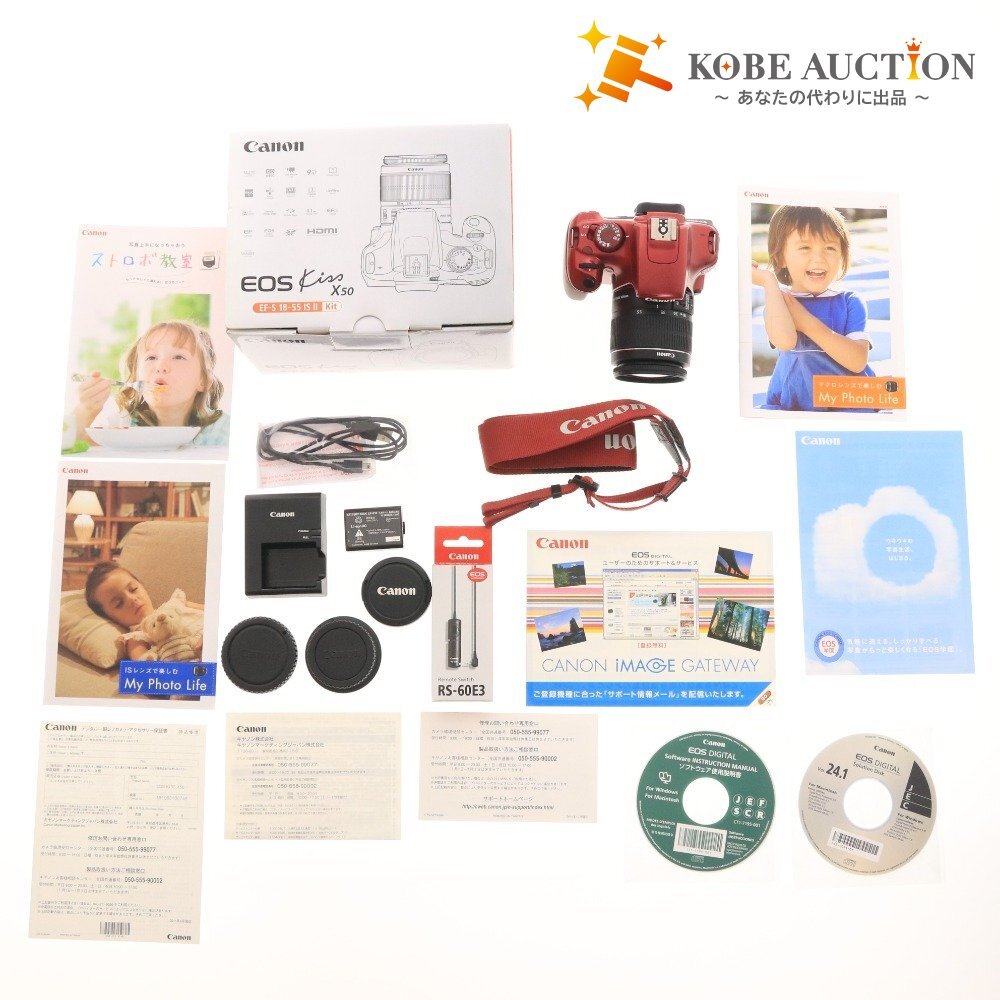 > ■ キヤノン EOS Kiss X50 EF-S 18-55 IS II カメラ デジタル一眼レフカメラ EF-S 18-55mm 1:3.5-5.6 本体レッド 通電確認済み 付属品付き
