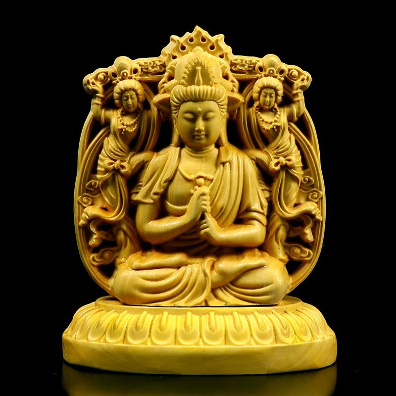 - 送料無料! 大日如来 両面 黄楊木 両面彫刻 観音菩薩 阿弥陀仏 仏護神仏 像仏教美術 細密彫刻 菩薩像 匠高技術 木彫 置物 sux230