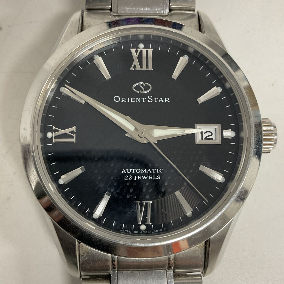 - 営NS009-60◆ ORIENT STAR オリエントスター AC03-C0-B 自動巻き 22石 裏スケ シルバー×ブラック文字盤 腕時計【稼働品】