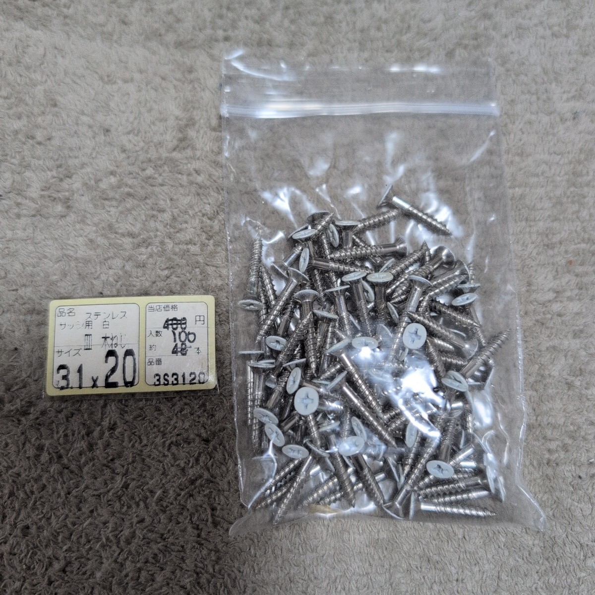 - ジャンク品/長期保管品/WAKAI/ステンレス/木ネジ/サッシ用/白/皿3.1×20mm/1P100本入り