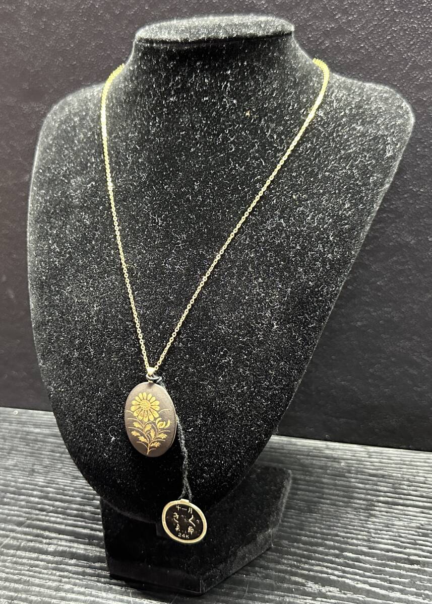- 純金製 象嵌 菊 真節 十一月 曉の伝統美 ネックレス 和物 ペンダント アクセサリー BA251