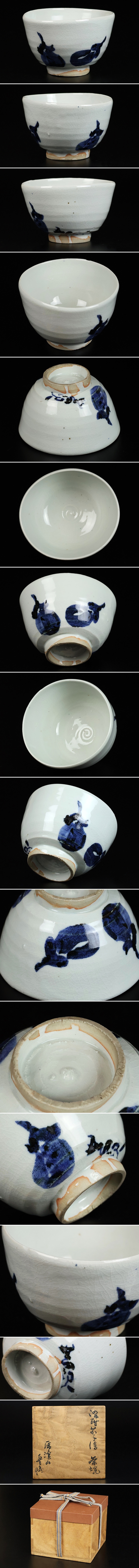 - 【 荒川豊蔵 】最上位作 染付茄子絵茶碗 人間国宝 共箱 保証 16735