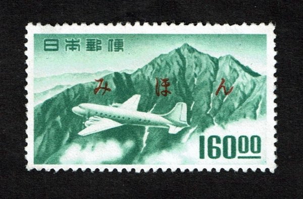 - P421■【みほん字入り・糊落ち】1952年 航空切手 立山航空(銭位) 160.00円■希少・良好