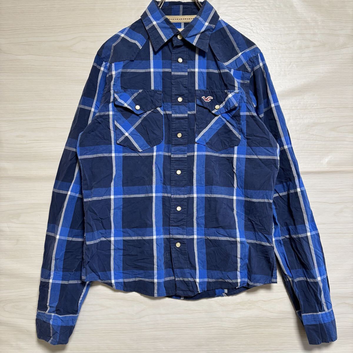 > HOLLISTER ホリスター 長袖シャツ レギュラーカラー チェックシャツ 胸ポケット サイズS ブルー 青 コットン メンズ トップス(41)