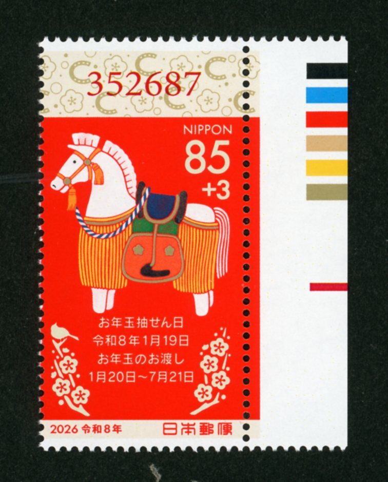 24734A2◆2026年用 年賀切手 ウマ88円CM右単★85極美品 令和8年用 85円