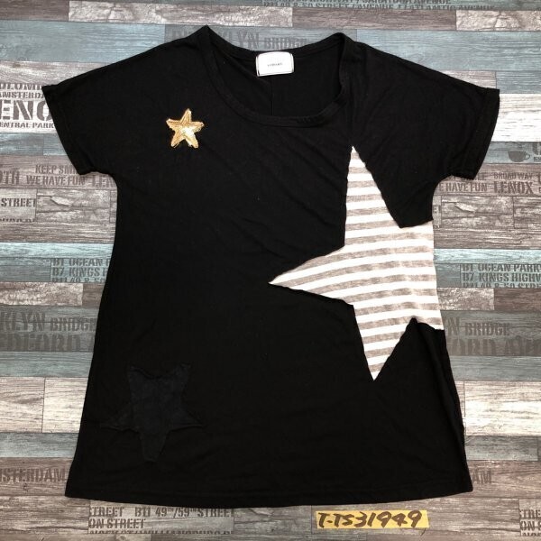 - VENTVIOLET レディース 星 チュニック 半袖Tシャツ L 黒