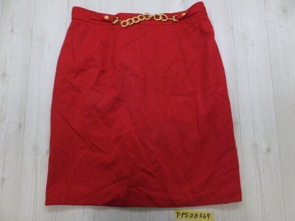 - ノーブランド レディース ゴールドチェーン付き ナイロン混ウール 膝丈スカート 日本製 裏地付き 88 赤