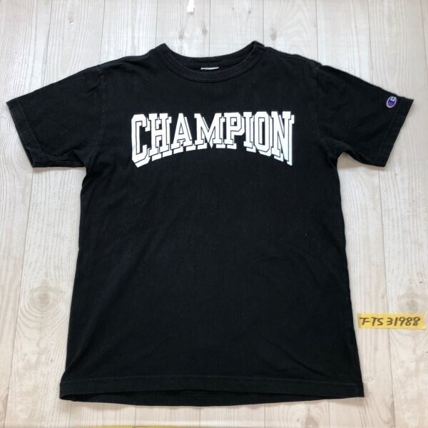 - Champion チャンピオン メンズ ロゴプリント ワンポイント刺繍 半袖Tシャツ 黒