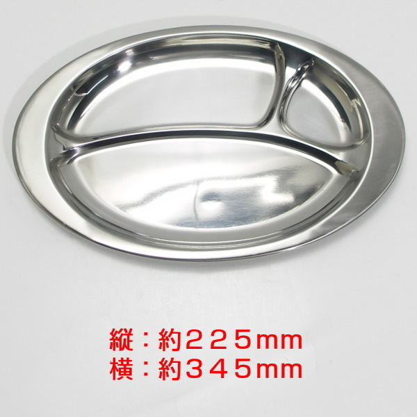 - 【未使用 訳アリ】ステンレス 小判皿 3ツ仕切 345mm ランチプレート 仕切皿