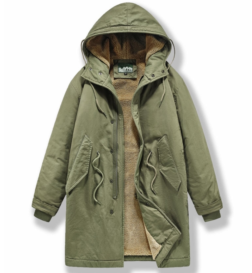 - 秋冬 メンズ ミリタリー風 中長丈 コットンパーカーコート アメカジ フード付きロングジャケット