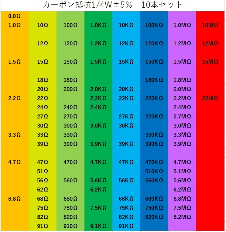 - カーボン抵抗 1/4W±5% 10本セット 100Ω 200Ω 300Ω 1kΩ等など