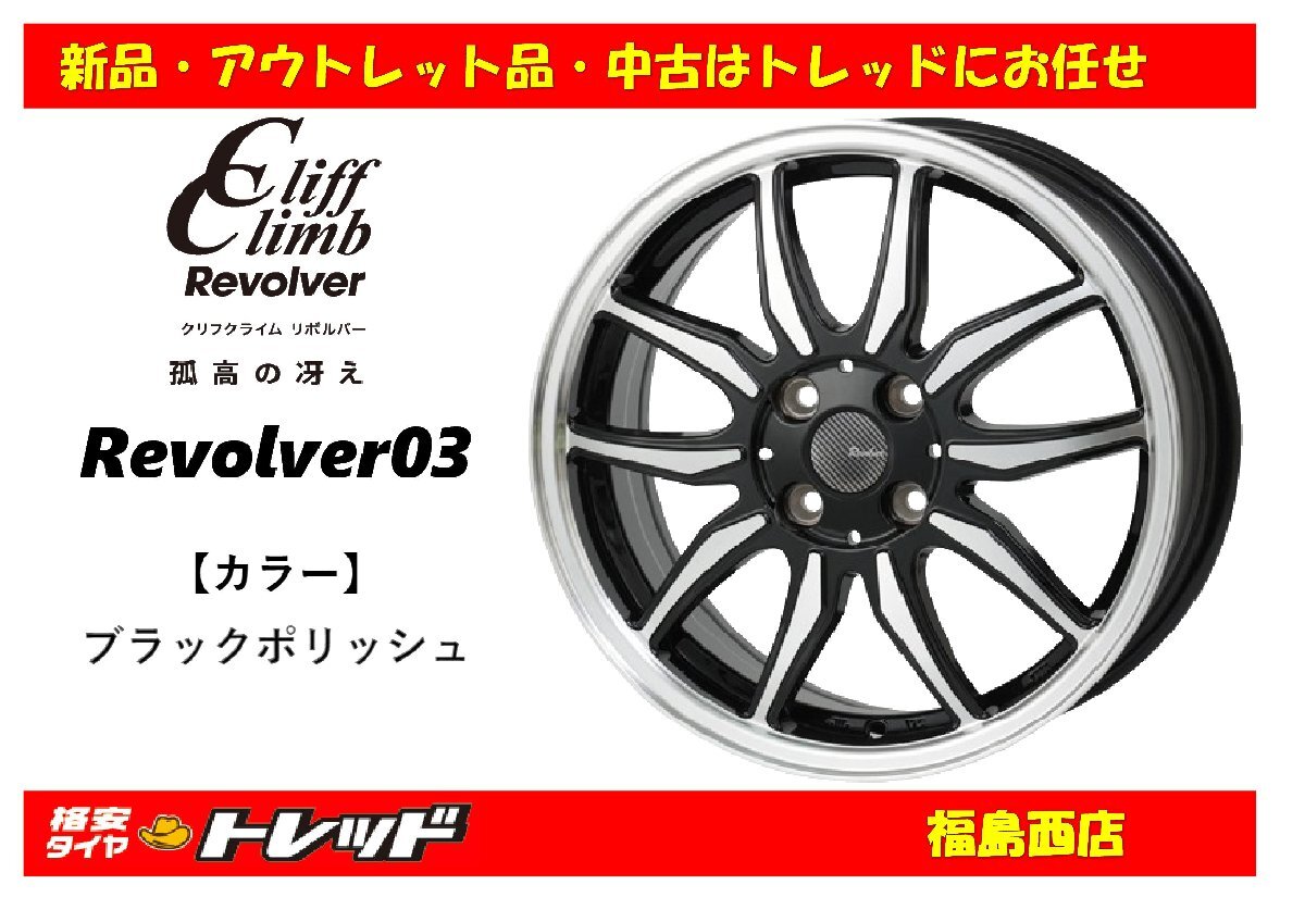 > 福島西 新品 アルミホイール単品4本セット クリフクライム リボルバー03 15インチ 4.5J 100/4H +45 ブラックポリッシュ ★軽自動車 他★