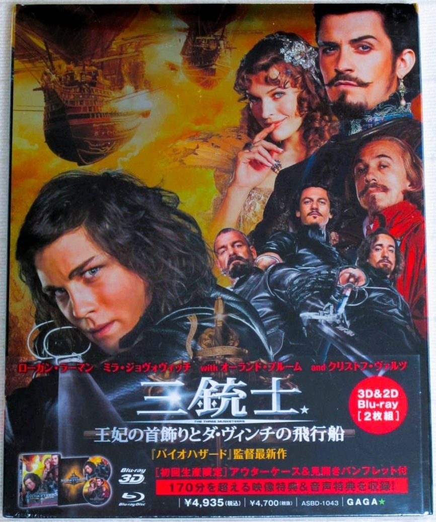 > 新品/3D★三銃士/王妃の首飾りとダ・ヴィンチの飛行船★日本初回限定アウターケース付き・2枚組版3D+2Dブルーレイ●オーランド・ブルーム●