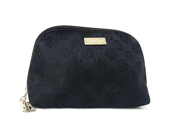 - ■極美品■ YVESSAINTLAURENT イヴサンローラン キャンバス ローズ柄 バラ 薔薇 ポーチ メイクポーチ 小物入れ ネイビー系 DK6428