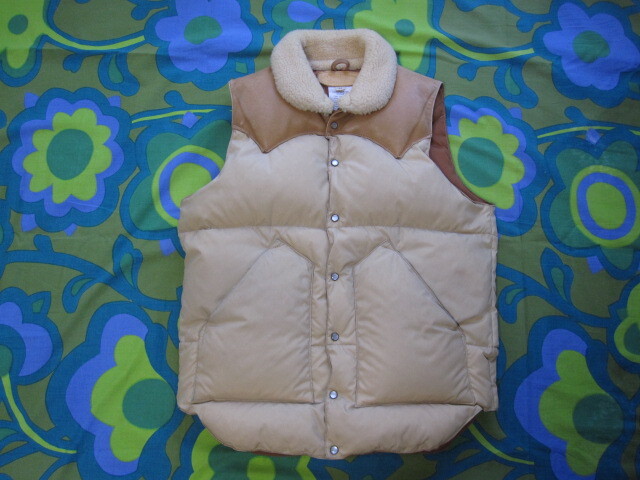 > Rocky Mountain ロッキーマウンテン Down Vest ダウンベスト サイズ36/メンズS ベージュ×薄茶 日本製 USEDキレイ キャンプ アウトドア