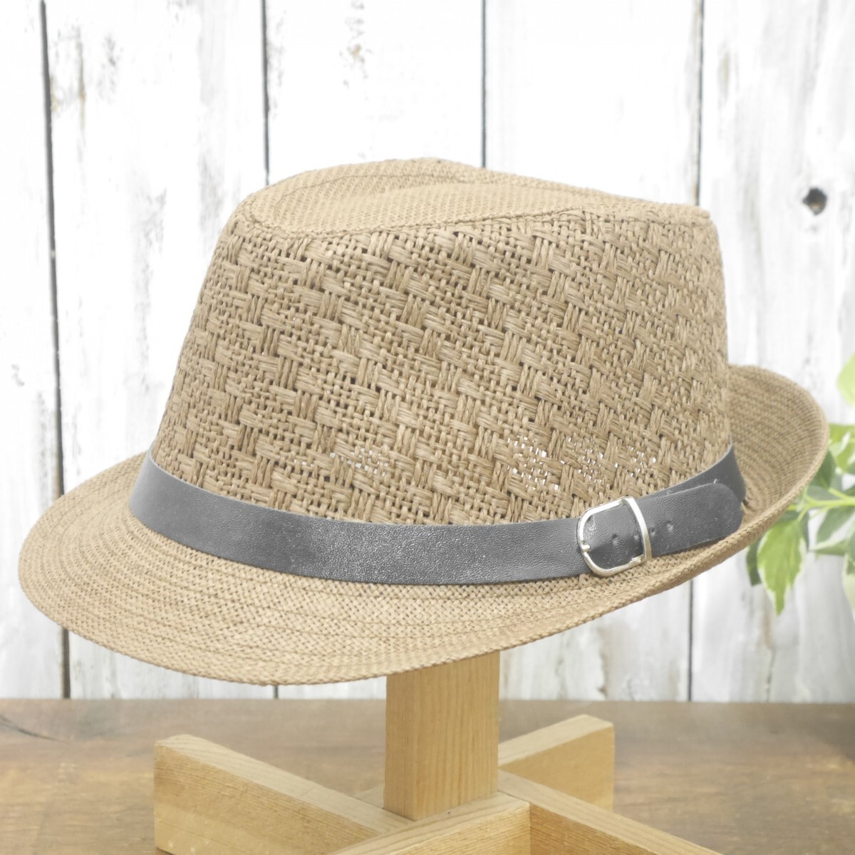 - 全国一律送料450円ストローハット 編み込み フェドラハット ブラウン シンプル 男女OK ハット パナマ ボルサリーノ 麦わら 中折れ