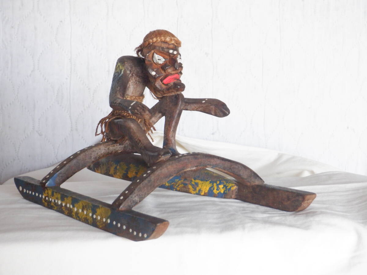 - 南太平洋の民芸品 ボートに乗る原住民 ハンドメード 1980年代 未使用品