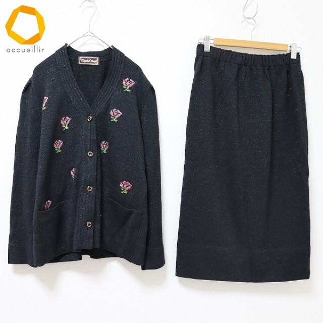 - 斉藤都世子 サイトウトヨコ セットアップ スカートスーツ ニット カーディガン スカート ラメ 花柄 [w973384n]