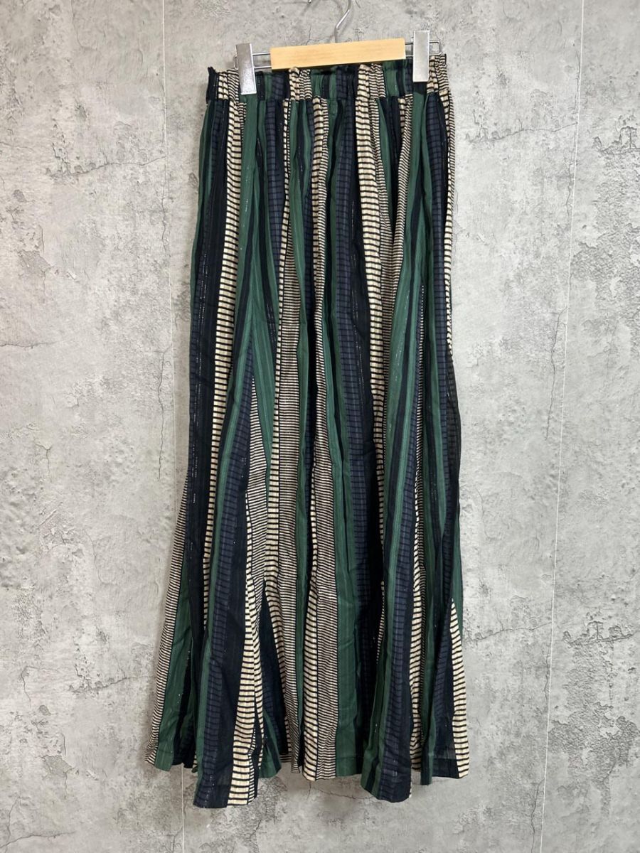 > 美品 SHIPS シップス タグ付き ストライプ柄 ロング スカート size38/紺×緑 ◇■ レディース