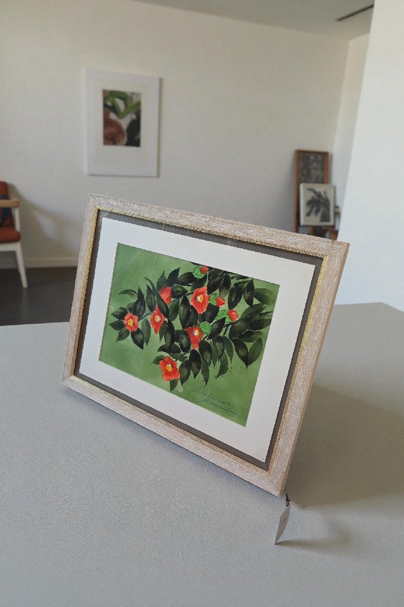 - ○Kimiko Shimada 色彩あざやかな水彩画 椿の花の絵 額 和モダン アート 古道具のgplus広島 2511i