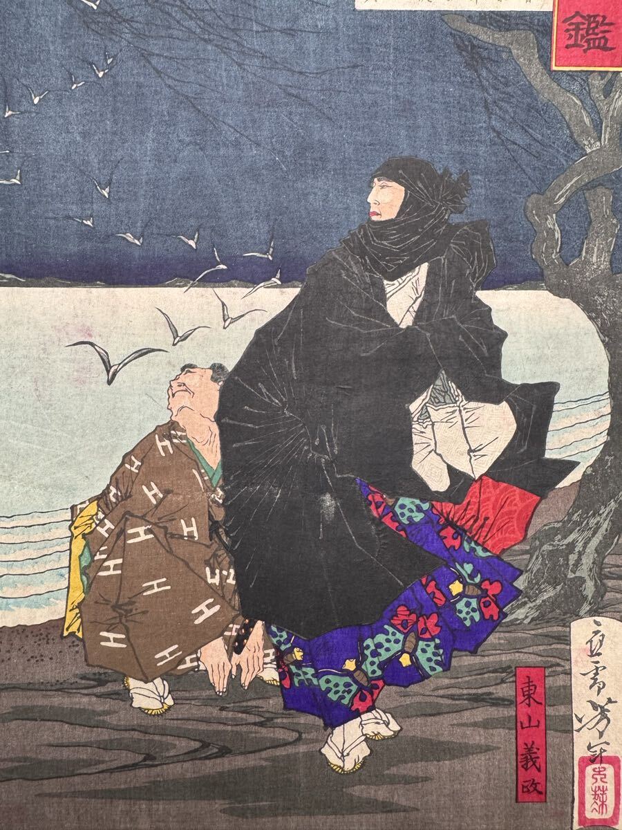 - 【真作】名作!本物浮世絵木版画 月岡芳年【大日本名将鑑 東山義政】明治期 武者絵 大判 錦絵 保存良い 裏打ち