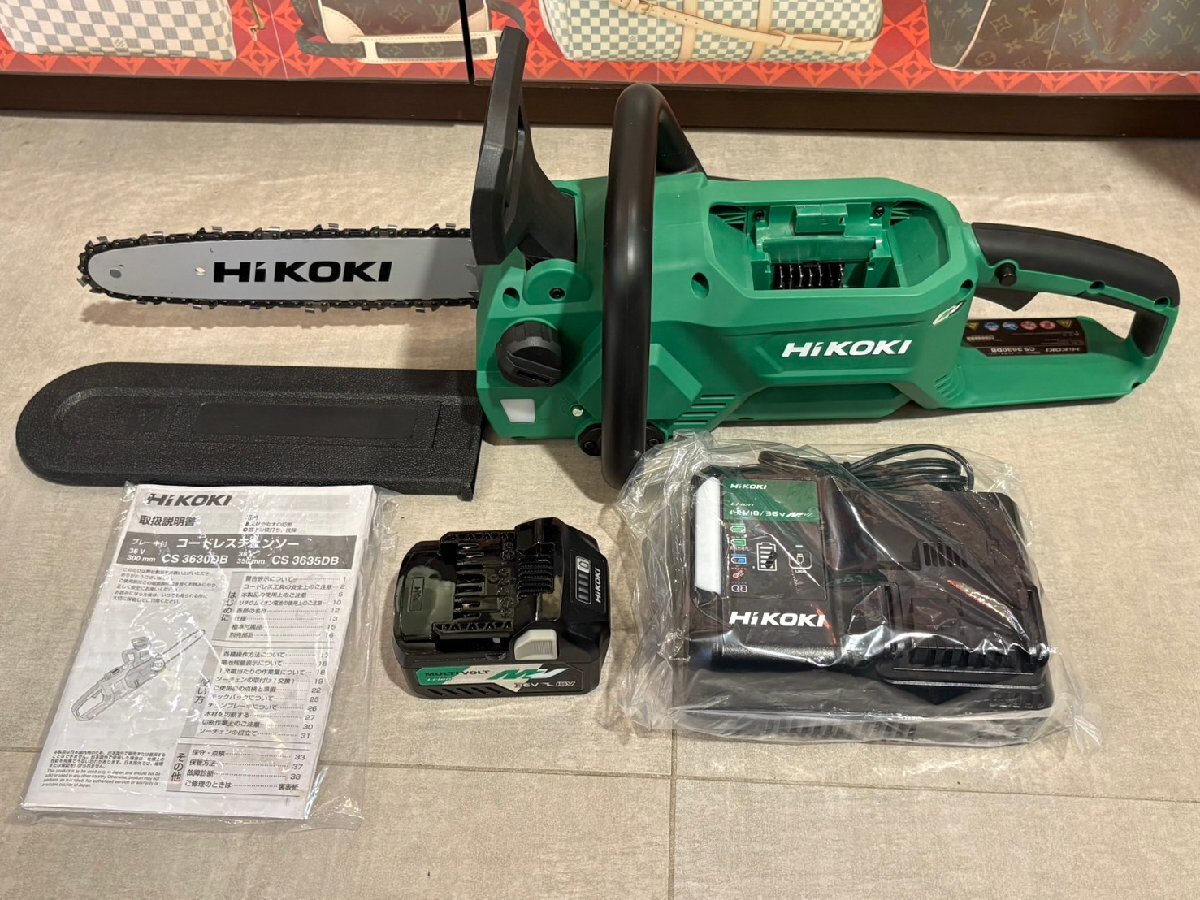 > ◆HITACHI 日立 マルチボルトコードレスチェーンソー CS3630DB バッテリー×1,充電器×1 カバー付き 中古◆17632