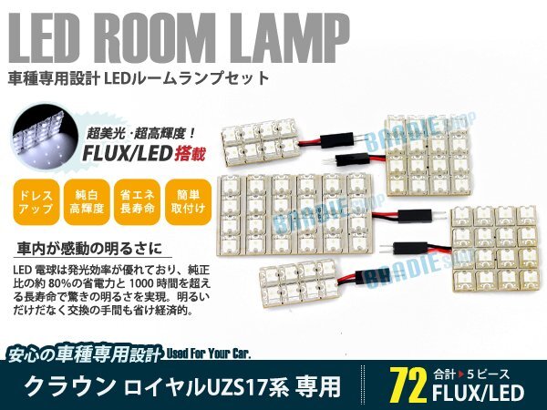 - UZS17系 クラウン ロイヤル 5ピース 合計72ブロック発光 高輝度ルームランプ LED化 白発光 高輝度FLUXタイプ 一台分セット