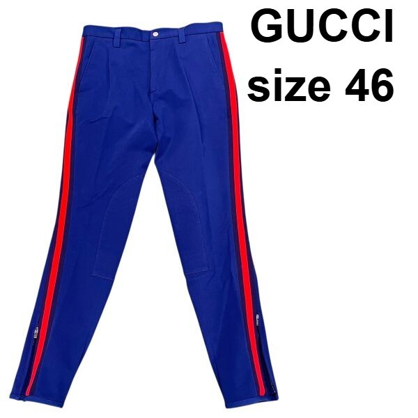 > ● グッチ GUCCI パンツ ストレッチ サイドライン ブルー 赤 ネイビー コットン 46 S~M メンズ S5W255