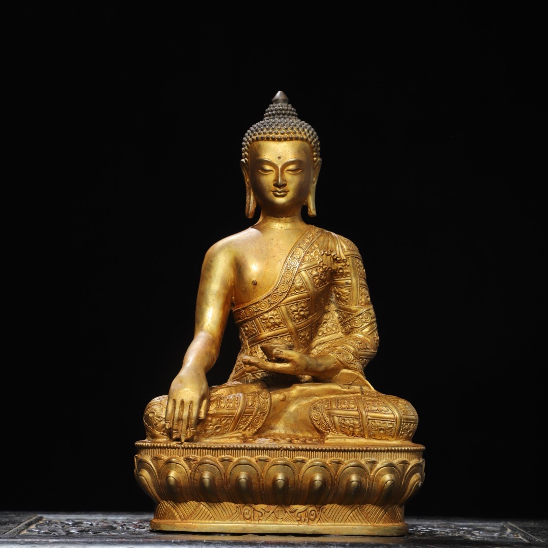 > 清時代 古銅彫 塗金 釋迦牟尼仏 仏像 仏 宗教 造像 供奉 置物 擺件 稀少珍品 時代物 古董品 骨董 旧家蔵出し 唐物 中国古玩 古美術品