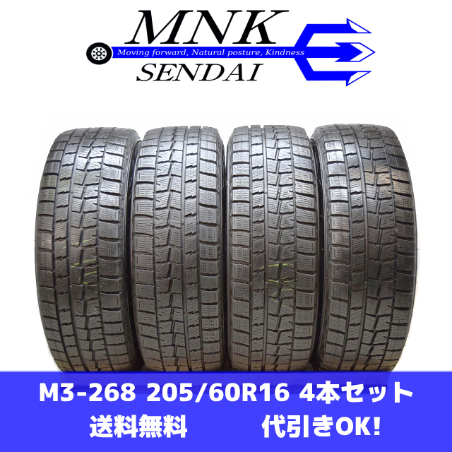 > M3-268(送料無料/代引きOK)ランクE 中古 美品 バリ溝 205/60R16 DUNLOP WINTERMAXX WM01 2018年 8.5分山 スタッドレス 4本SET