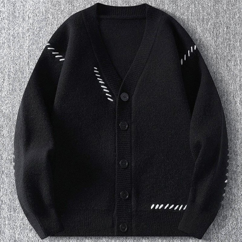 - 新品DCKMANY ウール混 ニット カーディガン リブ編み ニット ジャケット 秋冬 厚手 メンズ セーター カジュアル アウター 黒 T5201-3XL