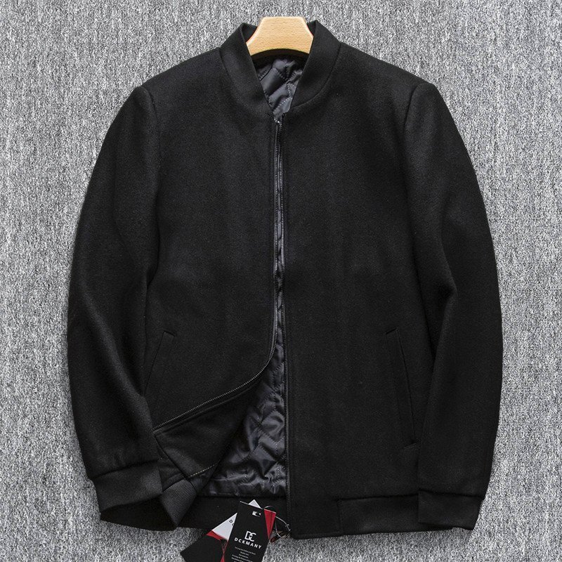 > 新品 DCKMANY ウール混 中綿ジャケット 毛織 防寒 ツイード風 ベースボールカラー メンズ アウター 秋冬 厚手 ビジネス 黒 T9036-2XL