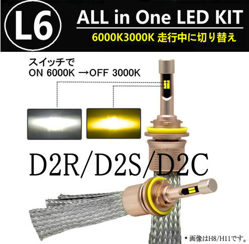 - L6 LEDヘッドライト/フォグランプ D2R/D2S/D2C ヒートリボン式 合計5500lm 色温度切替 ソールCSP 3000K/6000K 12V/24V キャンセラー内蔵