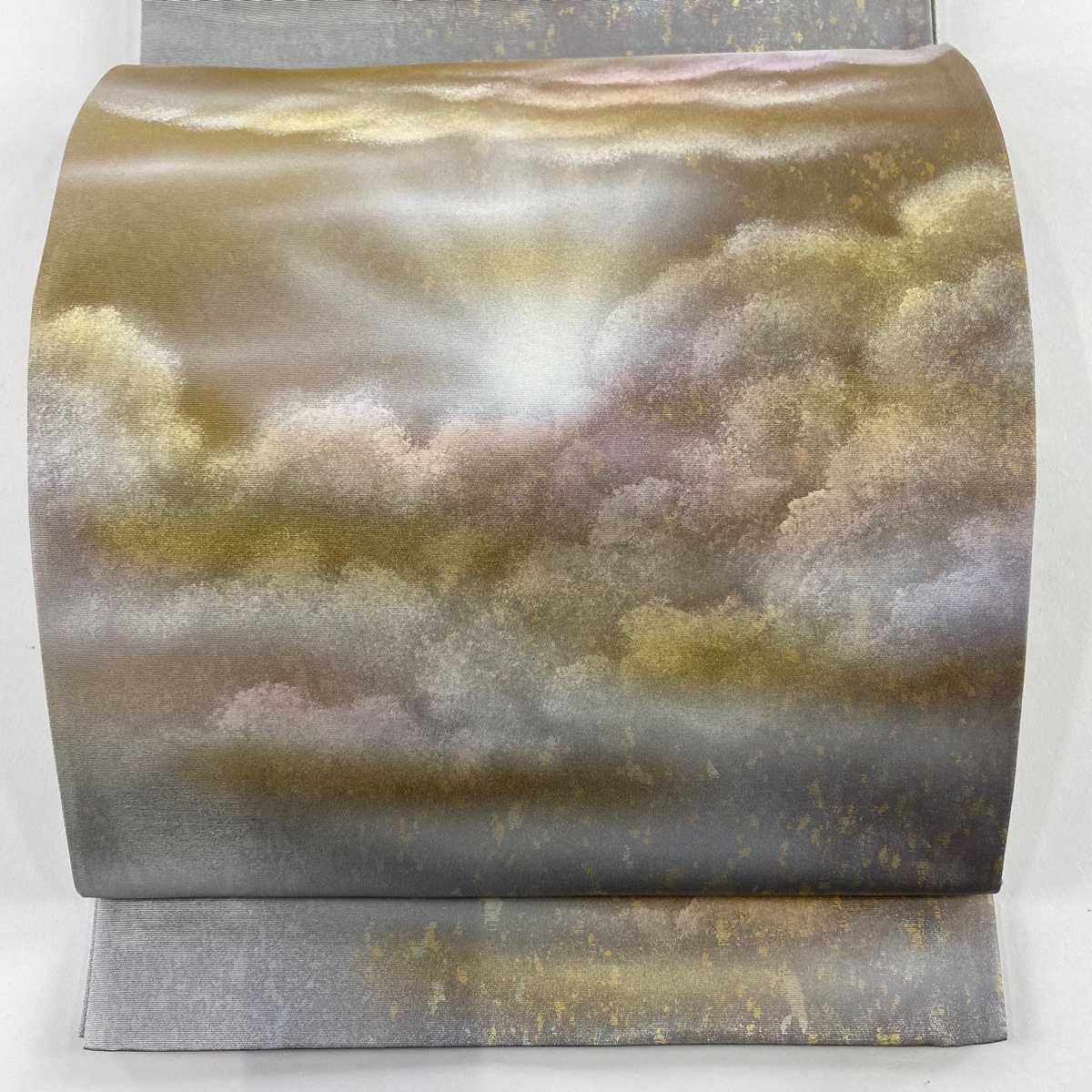 - 【美品】 袋帯 秀品 落款 証紙 雲文 陽光 金銀彩 灰茶 お太鼓柄 正絹 【中古】