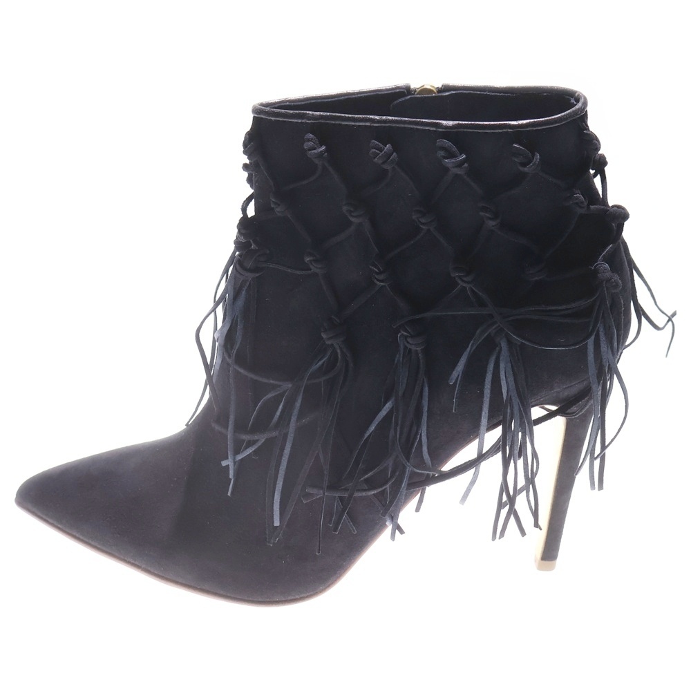 - Rupert Sanderson ルパートサンダーソン CHARISSE フリンジ スエード ショート ハイヒールブーツ レディース ブラック
