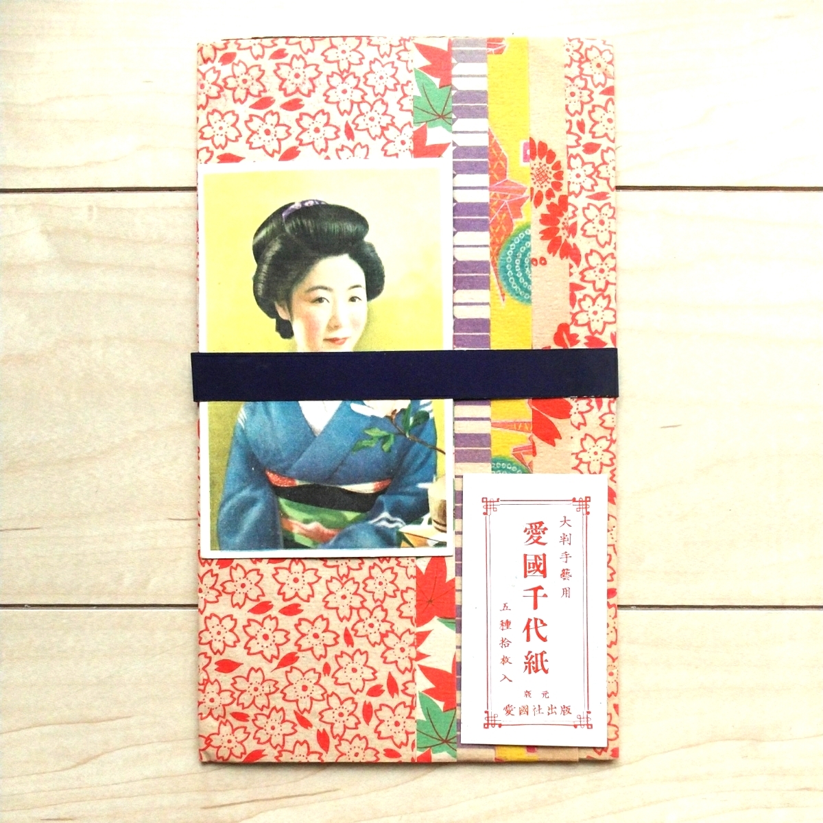 - ■『(大判手藝用)愛國千代紙・五種拾枚入』愛國社出版。★日本髪女性の紙片は葉書仕様。裏面萬葉集の当て紙。特段瑕疵毀損有りません。