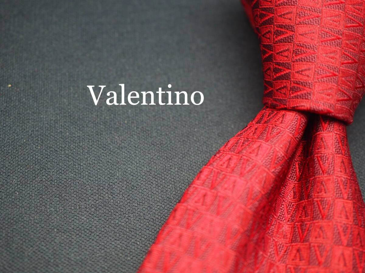 > 美品【VALENTINO ヴァレンティノ】 G1128 Vロゴ 赤系 SILK ブランド ネクタイ 古着 良品 転売 仕入