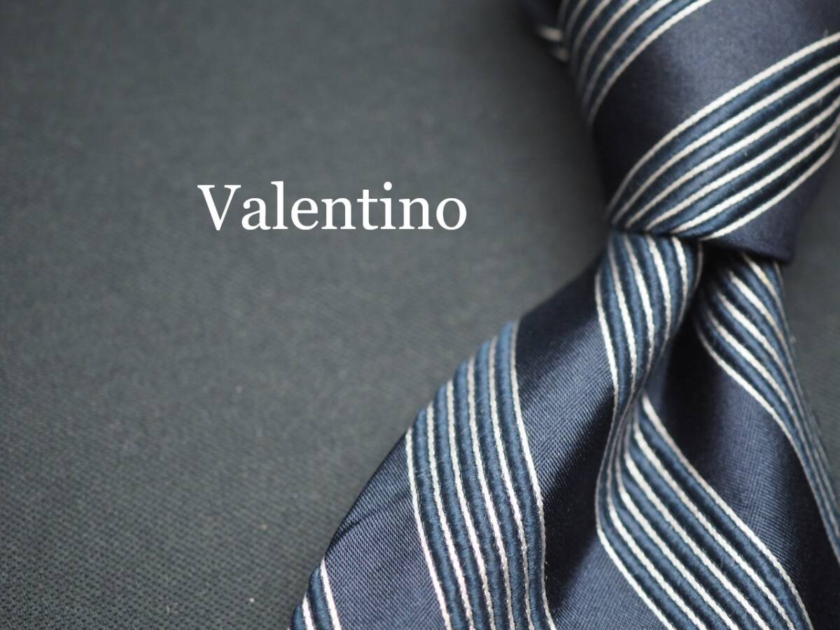 - 【VALENTINO ヴァレンティノ】 G1138 ネイビー系 SILK ブランド ネクタイ 古着 良品 転売 仕入