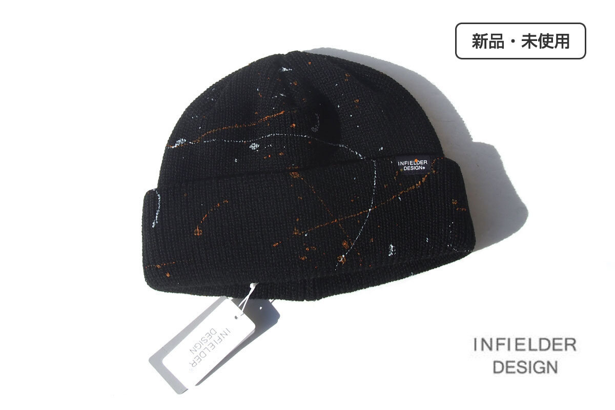 > 送料無料★新品|未使用|インフィールダーデザイン|INFIELDER DESIGN|ニットキャップ|ニットビーニー|PAINT KNIT CAP|BK