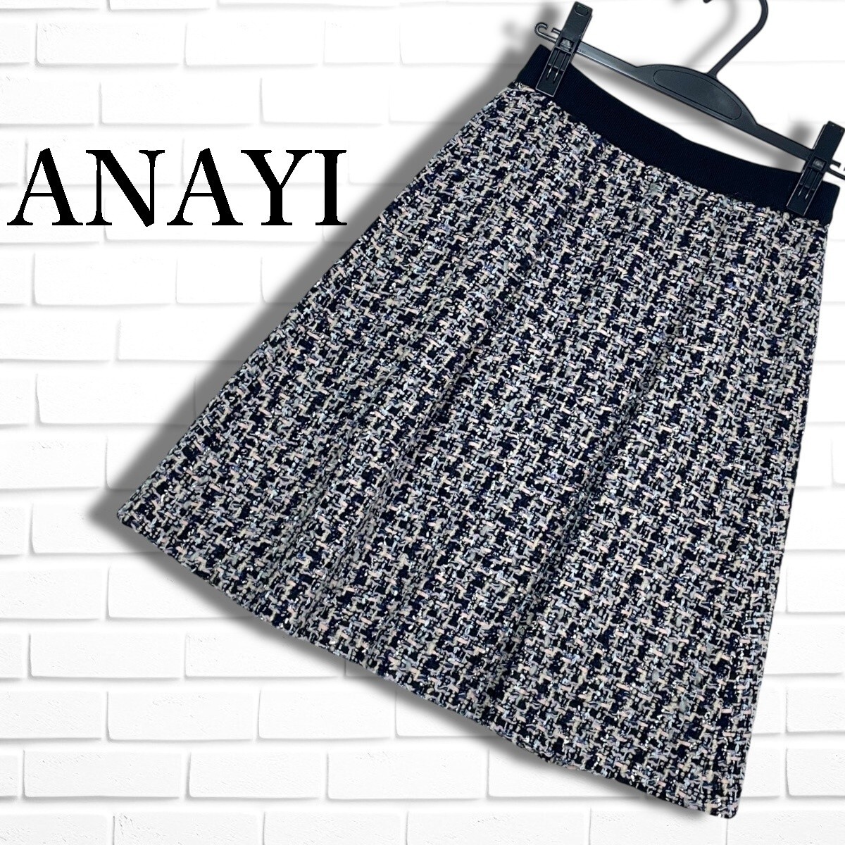 > ◆美品◆ ANAYI アナイ ウール ツイード イージー スカート レディース 38 ◆日本製 送料無料◆ 0265K◇