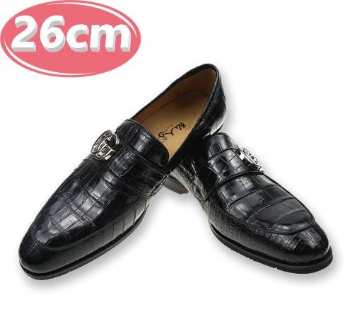 > クロコダイルレザー ビジネスシューズ 最高級 ワニ革 クロコダイル 靴 メンズシューズ 革靴 ブラック 26.0cm 【n783】