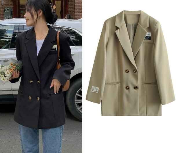 - 全2色 コート 長袖 切り替え 体型カバー 着痩せ ダブルブレスト シンプル フリー グリーン