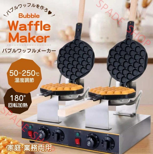 - 業務用バブルワッフルメーカー 2列 180°回転可能 両面焼き ワッフルメーカー デザート 1400+1400W 0℃~250℃温度調節可能 非粘着テフロン