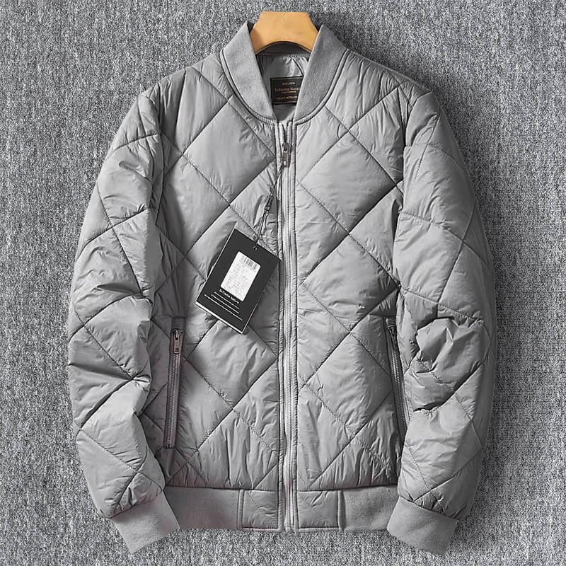 - 欧米サイズ 国内未販売 新品 ダイヤキルティング 中綿ジャケット 秋冬 保温 メンズ ボンバージャケット ベースボールカラー 灰 T8119-3XL