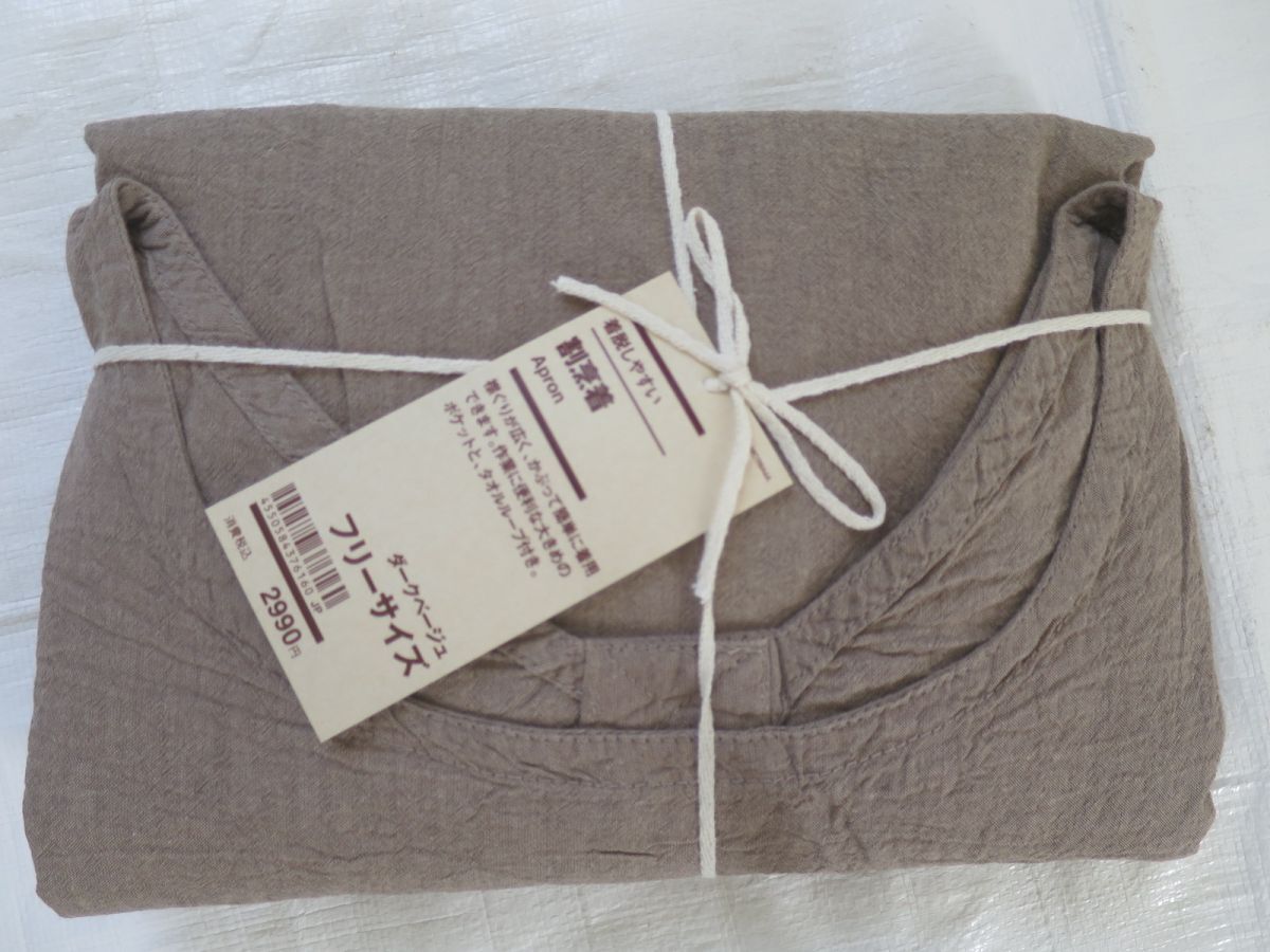 - 未使用タグ付 無印良品 着脱しやすい 割烹着 ダークベージュ フリーサイズ 84376160