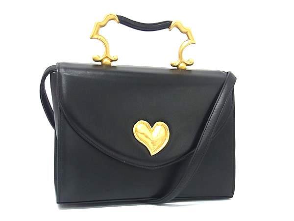 > 1円 ■美品■ CHARLES JOURDAN シャルル ジョルダン レザー 2WAY ワンハンドル ハンドバッグ ショルダー 斜め掛け ブラック系 FU5177