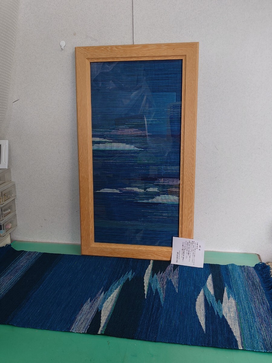 - ●北海道 伝統美術工芸 優佳良織 ユーカラ織【流氷】大型 飾額 手織 紡ぎ つづれ織 額サイズ 81×45 箱付/敷物 112×44cm 2点セット 美品③