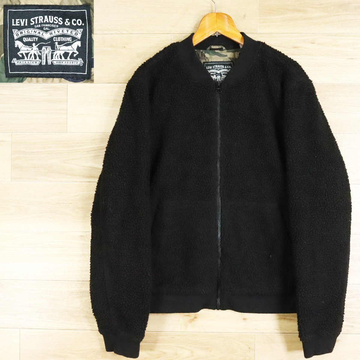 - J1S/O4.28-2 Levi's リーバイス MA-1タイプ ボアジャケット 裏カモ柄 フリースジャケット ジップアップ ブルゾン L ブラック